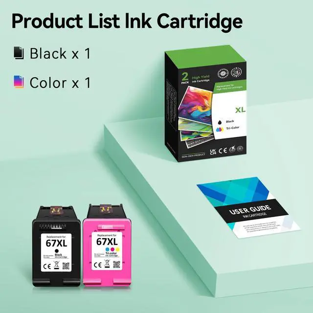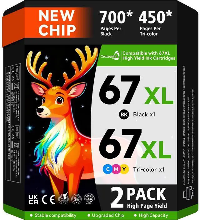 Equipped with upgraded chips: 67xl for hp 67 ink cartridges black/color combo pack equipped with the latest upgraded chips that ensure compatibility with supported printers. Please enjoy quick and reliable cartridge recognition, accurate ink level display, and a hassle-free, efficient printing experience ^^