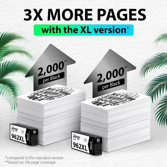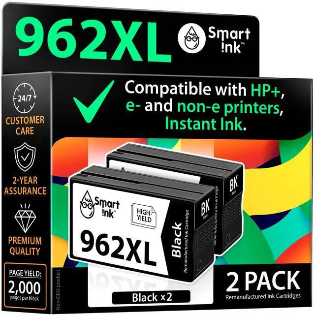 Experience next-level printing with the Smart Ink Remanufactured 962 XL cartridge, fully compatible with e-series printers, HP+, and HP Instant Ink-activated printers. ^^ Feel Confident in