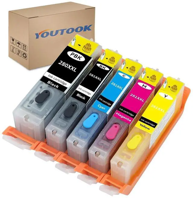 PACKAGE INCLUDED: 5 Pack high page yield ink inculde 1 x pgi-280xxl photo black, 1 x pgi-280xxl small black, 3 x 281 xxl ink cartridges combo pack (cyan, magenta, yellow)HIGH