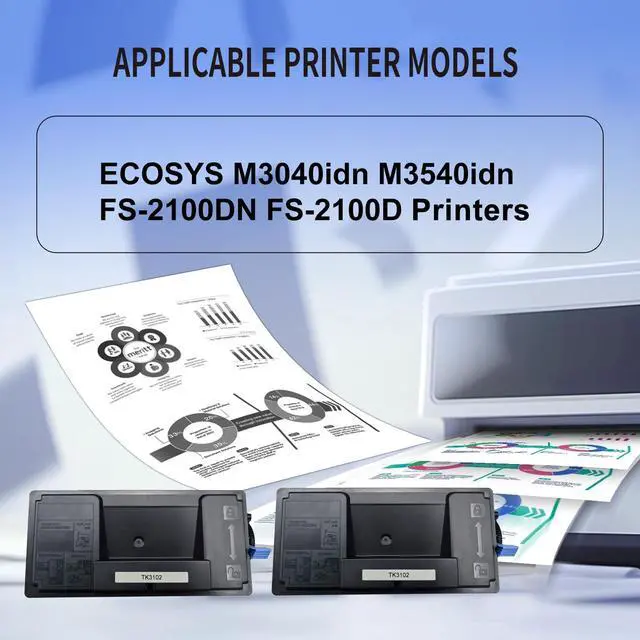 Page Yield: Up to 12, 500 pages per TK-3102 Black toner (Letter/A4, at 5% coverage), replacement for KyoceraTK-3102 toner ^^ Reliable Printing