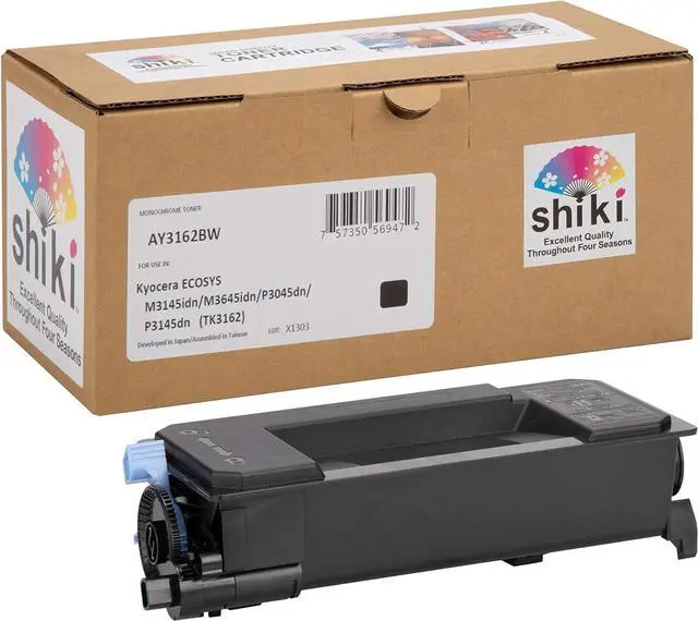 Color: Black / Compatible Toner Cartridge Replacement for Kyocera ECOSYS M3145idn M3645idn P3045dn P3145dn TK3162 (Black, 12500 Pages) Monochrome ^^ Developed using Japanese technologies, shiki yields outstanding printing quality that can vividly express the various scenes of shiki, or four seasons in Japanese. ^^ Having passed all of our tests, shiki has the quality that is equally high as OEM products in page yield and other quality indexes. ^^ To enjoy the highest printing quality, we recommend using the shiki brand for all four colors. ^^ Excellent Quality Throughout Four Seasons ^^ SHIKI contains high-grade toner that has passed the most rigorous environmental testing and maintains a stable and excellent quality throughout four seasons. *shiki () in Japanese means four seasons.