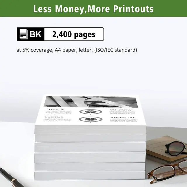 Page Yield: High capacity 2400 pages at 5% coverage, A4 paper, letter. (ISO/IEC standard). ^^ Superior Print Quality Trust in our compatible toner cartridges to consistently provide reliable performance. With advanced printing technology and high-quality components, our cartridges offer consistent and dependable results throughout their lifespans. ^^ Environmentally Friendly By choosing our compatible toner cartridges, you're making an environmentally conscious choice. Our cartridges are manufactured using eco-friendly materials, reducing waste and minimizing the impact on the environment. Enjoy excellent print quality while contributing to a greener future.