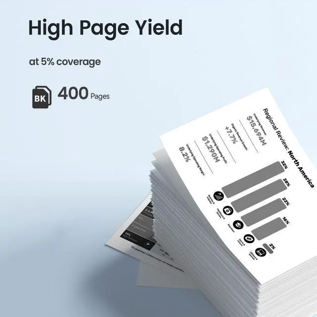 High Page Yield: Black ink is 400 pages per cartridge at 5% coverage on letter/a4 ^^ High