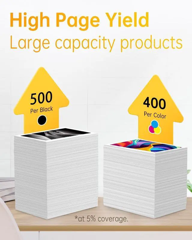 High Yield: 500 pages per PG245XL black ink cartridge, 400 pages per CL246XL tri-color ink cartridge at 5% coverage.