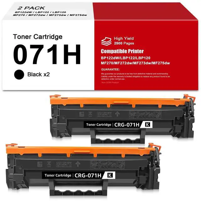 Package Include 2 Black 071H CRG-071H 071 High-Yield Compatible Toner Cartridge Replacement for 071 H CRG071H CRG-071H Black Toner ^^ 071 H Black Toner High CompatibilityCompatible for Canon ImageClass LBP120 Series LBP122dw ImageClass MF270 Series MF272dw MF273dw MF275dw Printer. ^^ Print more pages Up to 2, 500 pages per per 071H CRG-071H 071 High Capacity toner black cartridge ^^ Superior Print Quality Toner cartridges 071h, especially those that are laser-based, produce sharp, smudge-resistant text and graphics with consistent quality, making them ideal for professional documents. ^^ Long-Term Stability Toner 071h does not dry out like liquid ink, even if the printer is unused for extended periods.