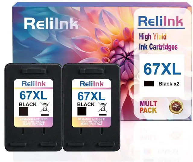 ^^ Premium Ink Formula: Sharp text and vivid, smudge-proof images for hp ink 67 combo pack. Filled with premium-quality ink for hp 67xl ink, these for hp deskjet 2755e 2700 ink cartridges produce crisp text and vivid images. ReliInk ink for hp 67 xl black ink cartridge is perfect for everyday documents, creative projects, and photographs. From business reports to family photo albums, enjoy professional-quality printing that lasts with these for hp envy 6055e 6000 ink cartridges.