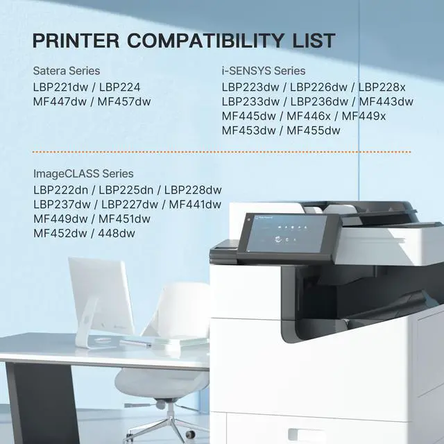 ^^ Printer compatibility: Compatible for Canon 057 toner cartridge use with Canon Satera LBP221dw, LBP224; Satera MFP MF447dw, MF457dw; i-SENSYS LBP223dw, LBP226dw, LBP228x, LBP233dw, LBP236dw, MF443dw, MF445dw, MF446x, MF449x, MF453dw, MF455dw; ImageCLASS LBP222dn, LBP225dn, LBP228dw, LBP237dw, LBP227dw, MF441dw, MF449dw, MF451dw, MF452dw, 448dw; MF440, LBP220 series printer ink.