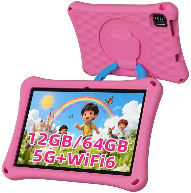 Kids Tablet, 10.1 inch Android 13 Tablet, 12GB+64GB, 1TB Expandable, 5G WiFi 6, BT 5.0, Quad-Core, 6000mAh, Dual Camera, AWAWA Parental Control Mode, Blue Light Eye Protection Screen with Case.