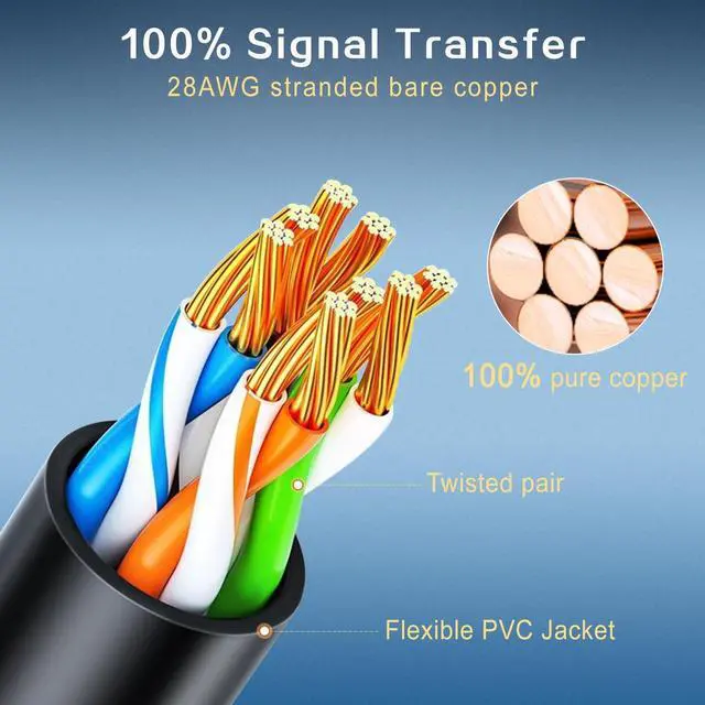 Transmission: CAT6 cable is made of 28AWG stranded bare copper, reliable and durable, and supports 10G speed 550MHZ Ethernet network. The Cat6 Ethernet jumper is compatible with the latest TIA- 568.2 -D standard and supports POE ^^