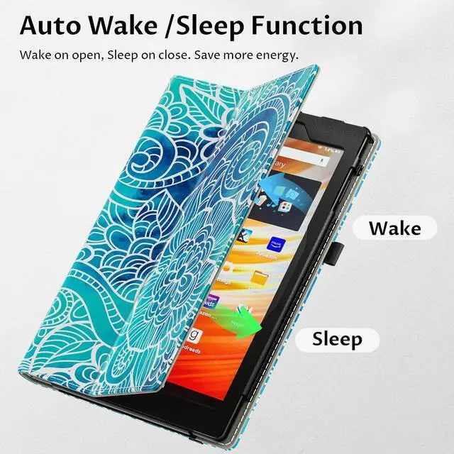 Angles]: Kindle Fire 10 case with useful dual-angle stand design, choose the typing angle or viewing angle as you want, provide comfortable viewing angles for reading, viewing, typing, or making video calls ^^ [Auto