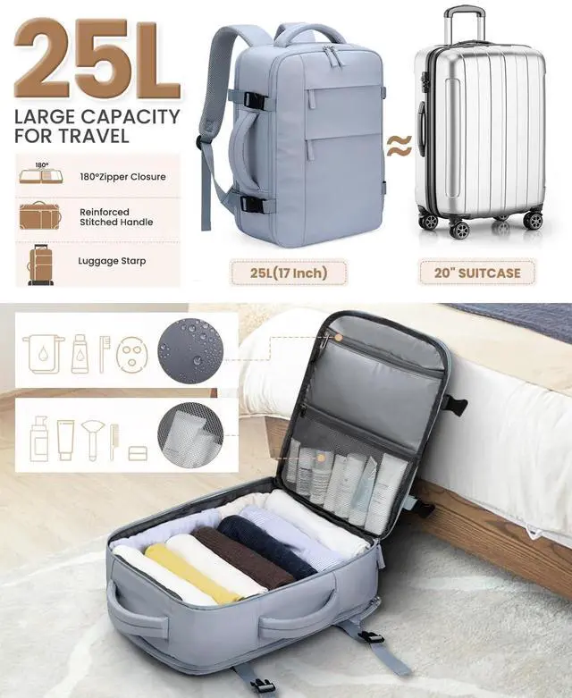 Backpacks: Sized at 18.5 13.5 7.5 inches & 25L a capacity for Large. Featuring a 180-degree bidirectional zipper closure, these backpacks enable quick and easy security checks. Ideal for travel, they fit both overhead and under-seat compartments. Compliant with most airline regulations Carry on regulations. Pritent travel backpacks offer the perfect blend of functionality and style, making them a must-have for any traveler. ^^ 25L Capacity & 11