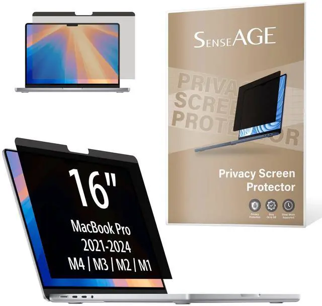 Compatible with MacBook Pro 16 inch M1/M2/M3Specifically designed for MacBook Pro 16 inch 20212023 (M1/M2/M3 Pro, Max A2485/A2780). Please confirm your model before purchasing. If unsure, feel free to contact us via the Q&A section. ^^ Magnetic Privacy Screen Easy Snap-on InstallationThis macbook pro 16 inch magnetic laptop privacy screen features automatic alignment. Removable Laptop Privacy Filter No adhesives needed, just snap it on and remove anytime, Fully closes your MacBook and supports sleep mode while attached. ^^ Upgraded Privacy Filter Black Screen from Side ViewLimits viewing angle to 30, keeping data visible only to the user.