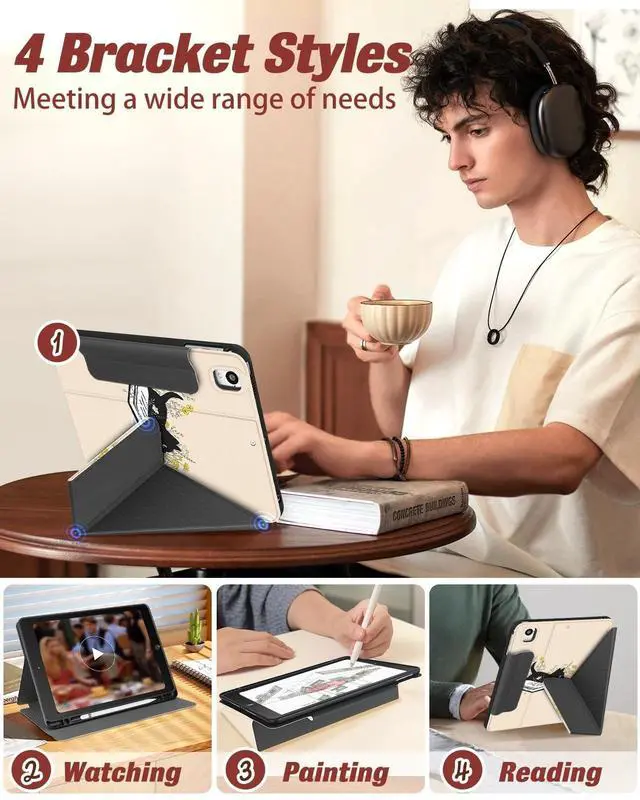 Bracket Styles: The case for iPad can stand at 4 different positions on the table. Provide you comfortable viewing and typing experiences ^^
