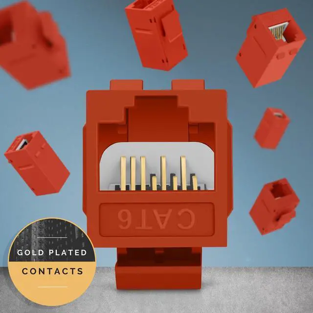 Slim Size - Everest rj45 Keystone Coupler fits into standard sized keystone wall plates and blank keystone patch panels. Snaps smoothly into place and easy to pop out. It is a cat 6 keystone coupler but also compatible with cat5e ethernet cable ^^ Quality Build - Gold is a good conductor and does not rust. This rj 45 coupler has gold-plated contacts for superior signal transmission. Material for the housing is high impact ABS plastic which is fire-retardant ^^ Ethernet Cable Extender - Simply use this two-line coupler to extend two short cables and enjoy high-speed data transfer, true-speed internet, with no signal loss.