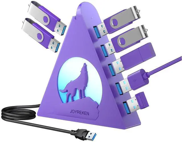The JoyReken 7-Port USB 3.0 Hub expands one USB port into seven high-speed 5Gbps USB 3.0 ports, perfect for connecting devices like keyboards, mice, printers, flash drives, VR gear, and