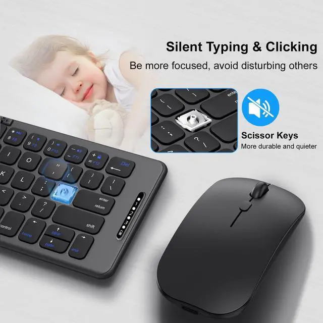Features sturdy alloy hinges for smooth folding/unfolding and stable typing on uneven surfaces. ^^ Long-Lasting & Travel-Ready This rechargeable foldable keyboard features a built-in battery delivering 3 months standby time per charge (includes Type-C cable). Its ultra-portable design makes it ideal for business trips, coffee shops, or remote work no more hunting for outlets. ^^ Keyboard & Mouse Combo for Effortless Productivity This foldable Bluetooth keyboard and mouse pairs with a silent wireless mouse to create the ultimate portable workspace. Enjoy laptop-style scissor-switch keys for quiet, responsive typing, while the ergonomic mouse provides precise cursor control - all without taking up extra space in your bag.