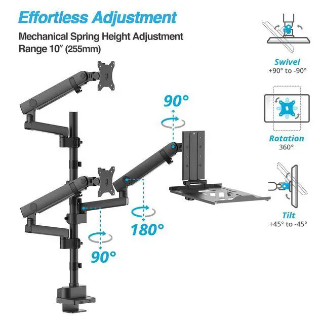 ^^ Triple Display Mastery: Supports 17" to 40" flat, curved, or ultrawide monitors up to 26.4 lbs (12 kg) each with VESA 75x75/100x100 for a clutter-free, immersive setup. ^^