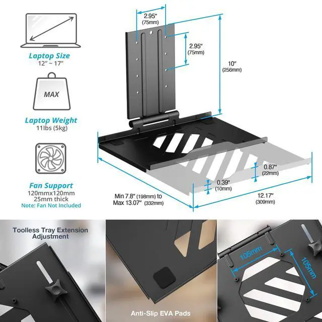 Laptop Cooling Tray Included: Adjustable 12"-17" laptop tray with ventilated mesh and fan-ready design ensures optimal performance and airflow.
