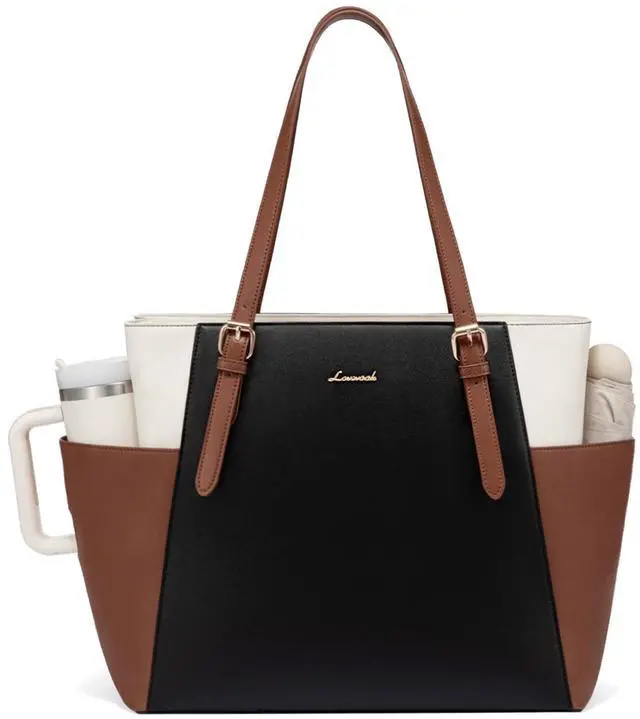 External Large Water Bottle Pocket: This PU tote bag comes with a dedicated large-capacity water bottle side pocket (holds a 30/40 oz water bottle) to keep your drinks upright and prevent leaks during your commute.