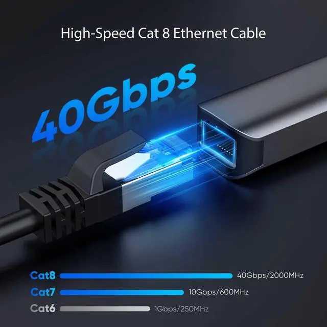 Data Transfer: Cat 8 ethernet cable transfer data at incredible speeds and supports up to 40Gbps and 2000MHz bandwidth, ideal for 8K streaming, VR gaming, and data centers. Cat8 ethernet cable 150 ft is future-proofing and faster data transfer compared to Cat5e and Cat6 and Cat7 cables.