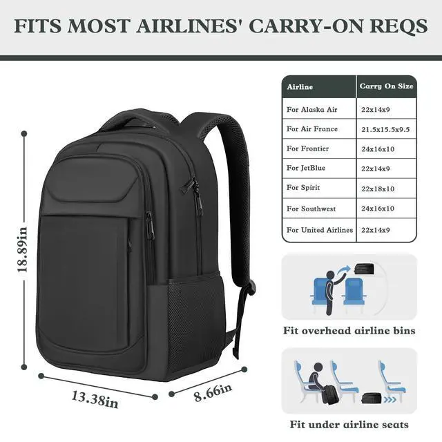 ^^ [WATER RESISTANT & ERGONOMIC COMFORT] Crafted from premium water-resistant polyester, this backpack protects your gear from unexpected rain and spills. The airflow back design with thick ventilated padding and adjustable, breathable shoulder straps ensures maximum comfort during long commutes or all-day campus wear. ^^ [VERSATILE TRAVEL & DAILY COMMUTE] Blending professional style with travel functionality, this backpack is perfect for office work, university, or business trips. While optimized for daily use, it remains flight-approved for occasional travel, featuring a built-in luggage strap to slide over suitcase handles for effortless airport transit.