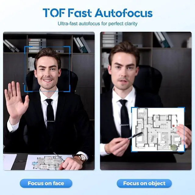 ^^ TOF autofocus dual noise-canceling microphonesThe TOF fast autofocus function instantly locks onto faces or moving objects, ensuring ultra-clear image quality performance in dynamic scenes stays in perfect focus. Equipped with dual noise-canceling microphones, this computer camera effectively reduces background noises such as keyboard tapping and air-conditioning operation, ensuring that your voice is always clearly conveyed. ^^ Built-in Privacy CoverThe 4K webcam has a built-in sliding privacy cover that physically blocks the lens with a gentle push, completely eliminating the risk of hackers peeking in or privacy leaks, allowing you to control your privacy and security at all times.