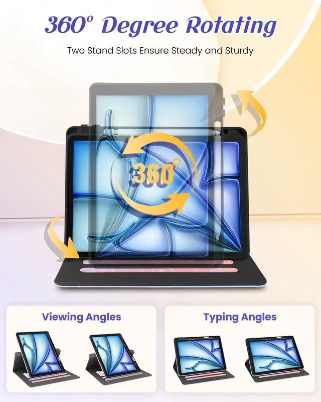Rotating Stand: This for iPad Air case 11 inch/for iPad Air 5th/4th generation case/for iPad Pro case 11 inch 2020 with an functional rotating stand design, supporting your devices to switch between landscape and portrait orientations. While 2 anti-slip strip design allow for multiple horizontal stand angles for comfortable viewing or typing ^^