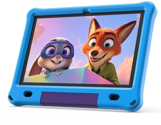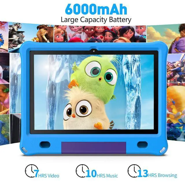 ^^ [High Capacity Battery & HD Touchscreen] - 6000mAh battery and low power CPU allows up to 8 hours of mixed use. 1280x800 IPS HD touchscreen provides the ultimate visual experience when video chatting, watching movies, playing games and reading eBooks. ^^ [10" Kids Tablet] - Tablet for children aged 3-12 comes with a EVA case that covers the screen and effectively protects against occasional drops and bumps. The rotatable stand on the back of the case is easy to support while watching videos, freeing up your hands.
