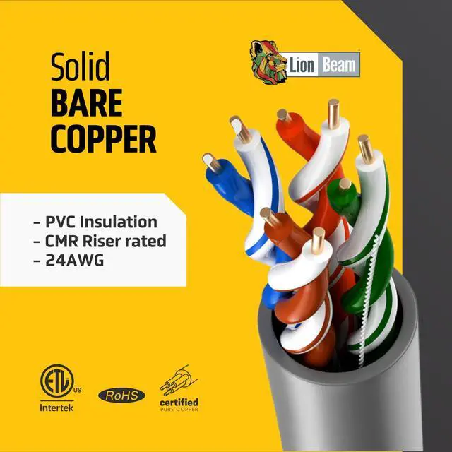 ^^ Tangle-Free Pull Box Cat5 Ethernet Cable The 1000ft Ethernet cable cat 5e comes in a smooth, easy-pull reel with metre-marked cable for hassle-free installation. Its sturdy box prevents tangling and damage on job sites, while the rip cord ensures effortless jacket removal. This makes the Cat5e Ethernet cable box ideal for professional installers, home DIY projects, replacing Ethernet cable spools, and expanding wired internet networks. ^^ Certified, Safe & Warranty Protected All Lion Beam ethernet cable spools are CSA and ETL certified, TAA & RoHS compliant, and flame-resistant to CMR standards (IEC 60332-3). Barcode traceable for authenticity and backed by a 25-year warranty. Available in multiple colours, including black ethernet cable 1000ft, blue, green, yellow, orange, purple, and white ethernet wire, making it the most versatile bulk cat 5e ethernet cable on the market.