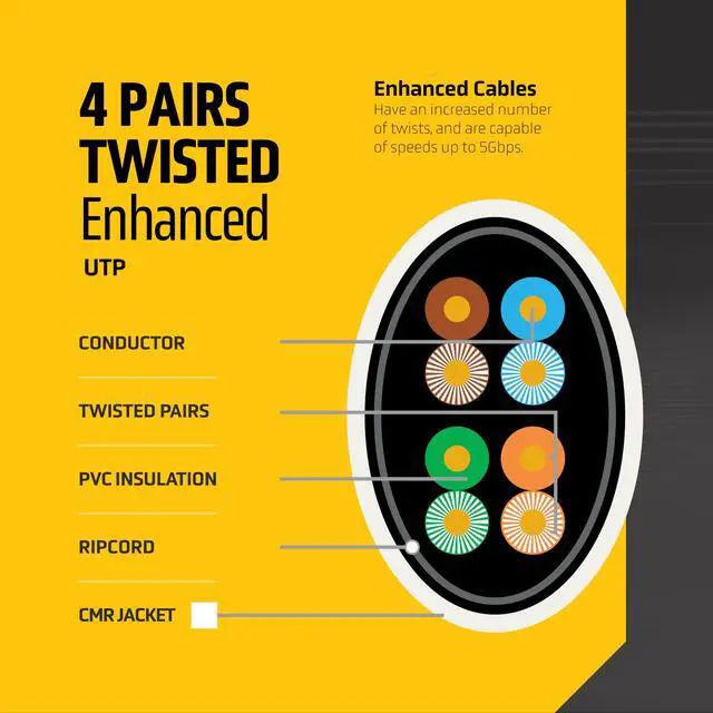 Dimensions: 1000ft (305m) pull box. This Cat 5e Ethernet cable bulk spool supports up to 350MHz bandwidth and speeds of 15Gbps, ensuring smooth data transfer for gaming consoles, modems, routers, CCTV security systems, and office networks. ^^ Pure Solid Bare Copper 24 AWG Ethernet Cable Cat 5 Unlike CCA alternatives, this Ethernet cable cat 5e 1000ft is made from 4 twisted pairs of pure solid bare copper wires with 8 conductors, offering maximum conductivity and low signal loss. Reinforced with a durable PVC CMR riser-rated jacket, this Cat 5 cable spool provides reliable long-term performance, making it the perfect Ethernet wire for structured cabling, patch panels, and keystone jacks. ^^ High Performance Network Cable Built to handle heavy traffic networks, this Cat 5e cable spool supports Power over Ethernet (PoE, PoE+, PoE++, 4PPoE up to 100W). It delivers stable performance across a wide range of devices, including IP cameras, VoIP phones, access points, smart TVs, and GPS navigation systems. With an enhanced twisted pair wire design, this bulk Cat5e cable minimizes crosstalk and ensures fast, reliable data transfer over long distances.