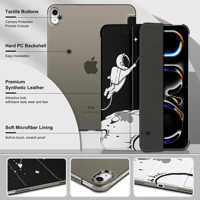MecBevia Case Compatible with iPad Air 11 Inch M3 (2025) / M2 (2024), iPad Air 10.9 Inch 5th Gen (2022) / 4th Gen (2020), Hard PC Back Cover with Auto Wake/Sleep, Astronauts Stars