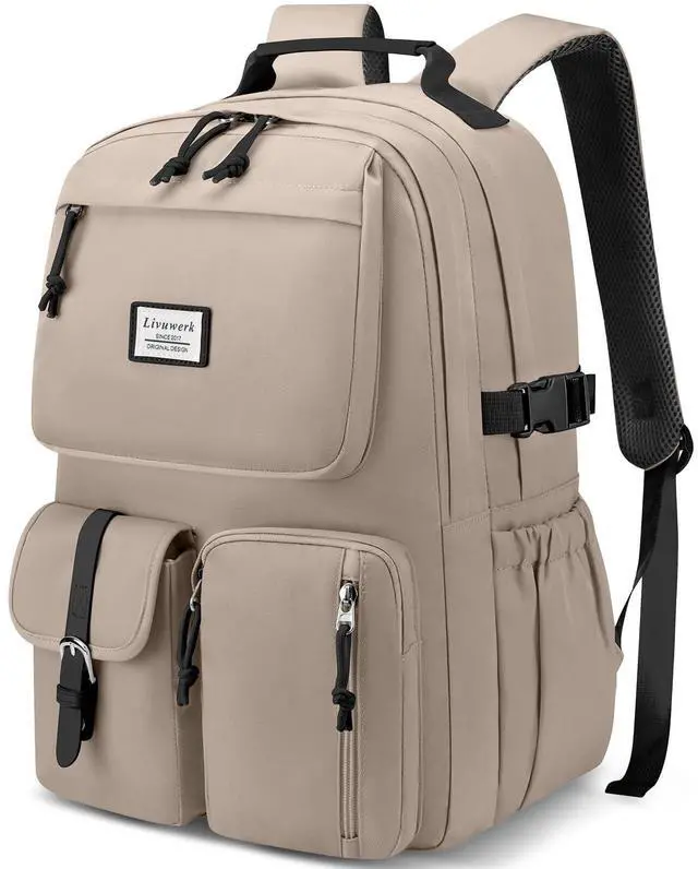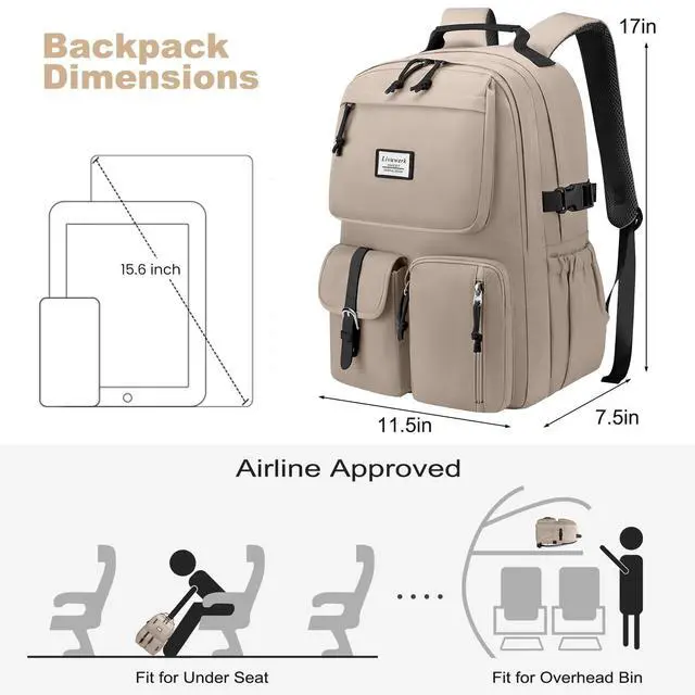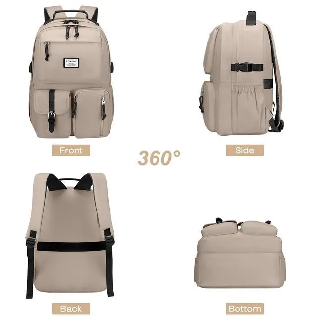 Pockets College Backpack: Women laptop backpack has 15 pockets, including a padded laptop compartment in the main compartment that fits a 15.6" laptop, a middle compartment for clothes, books, notebooks, magazines, and more, 4 front pockets for phone, earphone, pencil case, sticky notes, and other small items, 2 side pockets for water bottle and umbrella ^^
