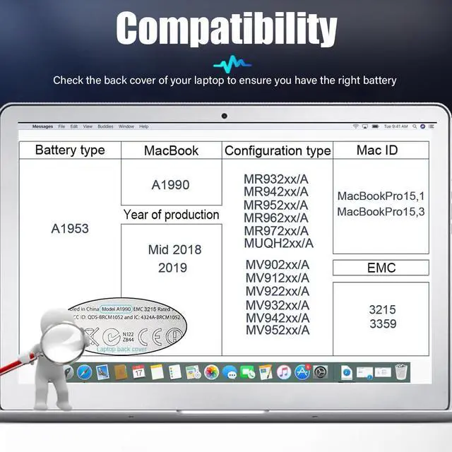 A1990 2019: MacBookPro15, 3 (15, 1) EMC 3359 (MV902LL/A, MV912LL/A, MV922LL/A, MV932LL/A, MV942LL/A, MV952LL/A, MV962LL/A, MV972LL/A, MV902B/A, MV912B/A) SF661-13163 ^^ ADVANTAGE that you can choice us: All the battery with real capacity. Longer operating time after charging. More safe. Suitable for scenarios such as meetings, business trips Library Learning (No need to constantly plug in the adapter. ). Promise A grade cell of our batteries. A trustworthy global brand--SNSYIY--Professional production and sales of batteries