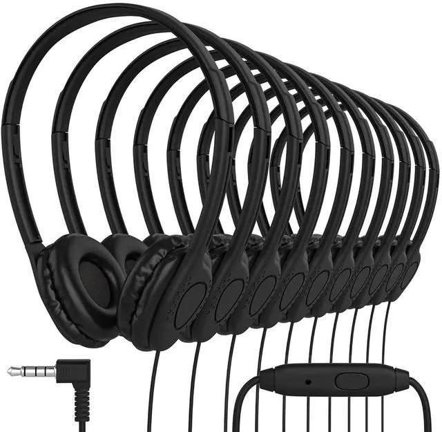 Wholesale Bundle Pack of 40 Bulk Headphones, with each headset individually packaged. Our design is kid-friendly and great for all ages. Suitable for airplane travel, school classrooms, library, museums, learning and standardized testing experiences for all ages. ^^ Maeline on-ear Headphones are designed for long-term comfort. Fit perfectly on your ears and provide a comfortable listening experience you can use all day. The soft leather ear cushions prevent sound leakage, reduce noise and improve the fidelity of music. ^^ Retractable and adjustable headband ensures optimal fitting. Perfect design that adjusts to fit every head shape.