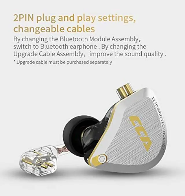 Premium IEM Earphones The CCA C12 in-ear monitors are expertly crafted with 5 balanced armatures and 1 dynamic driver on each side, delivering an extensive panoramic sound stage and exceptional layering. The expert tuning and overall warm tone provide an immersive in-ear experience. ^^ Great Clarity & HiFi Sound The CCA C12 earbuds feature a wide, balanced, and coherent top-to-bottom sound signature with high resolution and premium ductility, delivering high-density sound quality with powerful bass, open mid-range, and extended high frequency, rich in details. ^^ Detachable Cable The C12 in-ear monitor earphones adopt an anti-interference 8-strand low impedance wire that provides stable sound signal transmission.