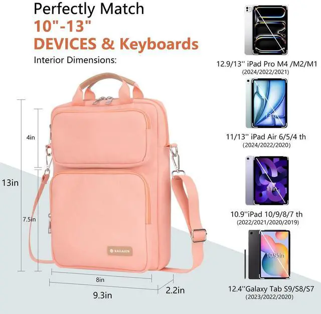 Compatible Device - The sleeve bag is designed for most 10-13 inch tablets. Compatible with 13 Inch New iPad Pro M4 & Air M2 2024, iPad Pro 12.9 M2/M1 2022/2021, iPad Pro 12.9 3rd / 4th Generation 2018-2020 / iPad Pro 12.9 (1st Gen 2015) tablet / 12-Inch New with Retina Display, Surface Pro X, Surface Laptop Go 12.4", Surface Pro 7/Surface Pro 6 12.3" /Surface Pro 4/Surface Pro 3/Surface Pro LTE 12.3 inch, Galaxy Tab S9+ 12.4 2023, Galaxy Tab Pro S 12.2", Galaxy Tab S8+ 12.4", MateBook 13".