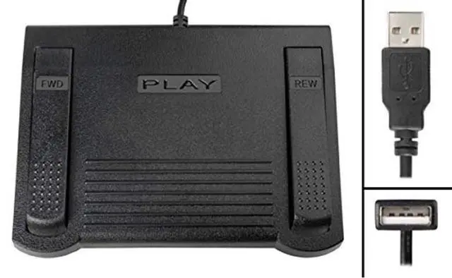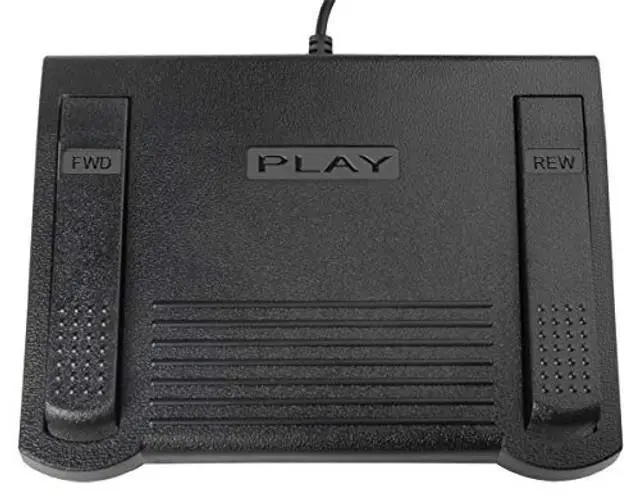Windows Media PlayerOnly Compatibility Designed exclusively for use with Windows Media Player (WMP) on Windows PCs. Initial setup requires configuration within Windows Media Player settings. Not compatible with transcription software or other media players. ^^ Triple-Function Playback Control Hands-free control of play, rewind, and fast-forward using a tactile, responsive three-pedal design for efficient audio playback operation. ^^ Ergonomic, Fatigue-Reducing Comfort Engineered to support comfortable foot positioning during extended work sessions, helping reduce strain and fatigue over long hours of use. ^^ Low-Profile, Discreet Design Slim form factor fits easily under desks or tables, keeping your workspace clean while providing convenient, hands-free control.