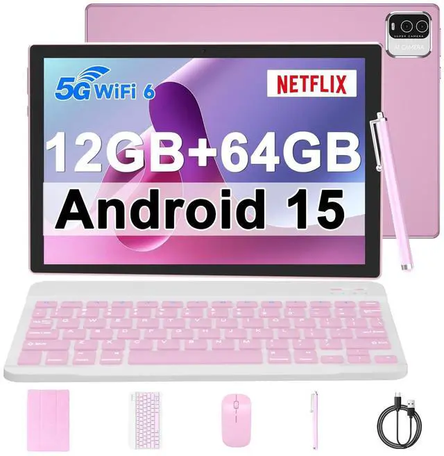 ^^ High Definition Dual Cameras 10.1 inch android 15 tablet computer has ultra-thin metal body, 1280x800 FHD IPS screen, presenting a vivid, colorful and dazzling visual experience. The cheap android tablet with rear 8MP autofocus camera + front 2MP wide-angle lens for easy shooting of high-definition photos and videos. ^^ 2 in 1 Tablets with Keyboard This portable tablet has a 2-in-1 working mode, you can use the bluetooth function to connect the keyboard, mouse, come with a foldable protective case stylus, you can flexibly turn the tablet into a laptop mode or computer mode for different use, edit your papers, emails, ppts comfortably.