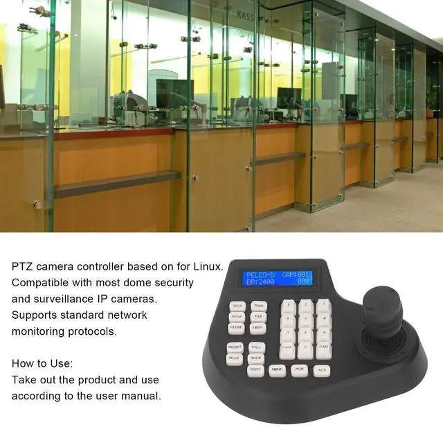 ^^ BETTER CONTROLThe controller is designed with 2D PTZ joystick, supports 2D control to up, down, left and right, while the clear LCD display and keyboard will largely simplify the use. ^^ WIDE APPLICATIONThe pan tilt camera controller can be widely used in various important places, such as security, telecommunications departments, procuratorates, courts, banks, education, taxation, etc. ^^ QUALITY If you receive a defective product, please us and we will do our best within 24 hours to ensure your complete satisfaction.