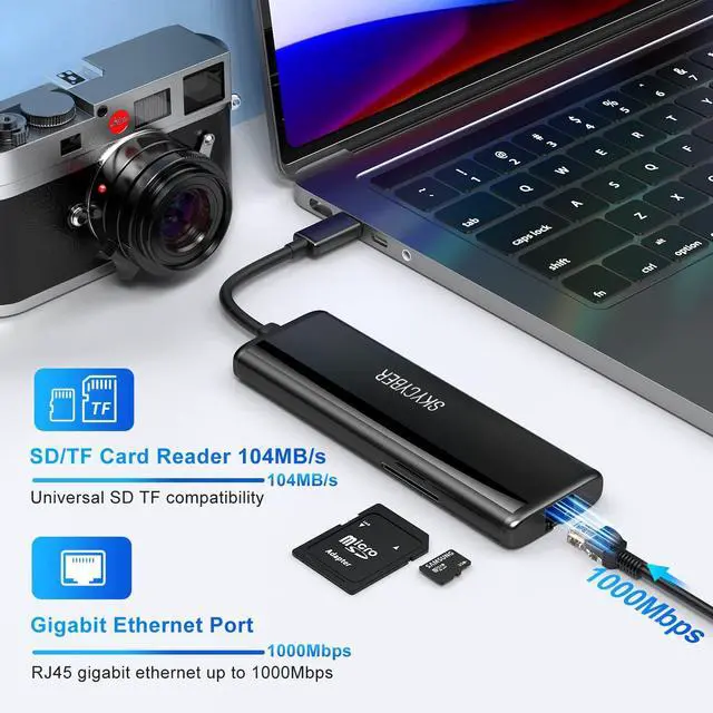 Use this USB C to SD/TF card reader (speed up to 104 Mbp/s) to access files from SD/TF card reader, and quickly view your photos or videos, ideal for photographers or designers or video edits etc. ^^ Widely Compatibility This USB C laptop docking station is suitable for devices with USB-C ports, such as Macbooks, iPad and Android smartphones with TYPE-C ports, Thunderbolt 4 laptops, graphics cards and more. And compatible with Windows and macOS, iPadOS systems. Plug and play, no additional drivers are required.
