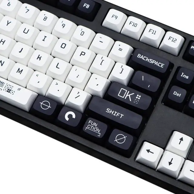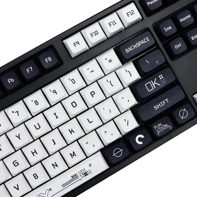 DURABLEMade from PBT materials with ergonomic ladder design and XDA profile, its anti-grease to ensure better using experience. ^^ UNIQUEThe 128 keyboard keycaps with dark blue and white keycaps, the theme we call it "Molgria B42 ", it's very unique and gorgeous for your keyboard. ^^ ARTWORKWith thermal sublimation process, the color pattern is color brighter and not easy to fade, the vivid pattern like an artwork painting on the keyboard. ^^ TEXTUREDMatte PBT thermal sublimation keyboard keycaps with smooth grainy texture feeling, its fingerprints proof, prevent sweat and oil stick.