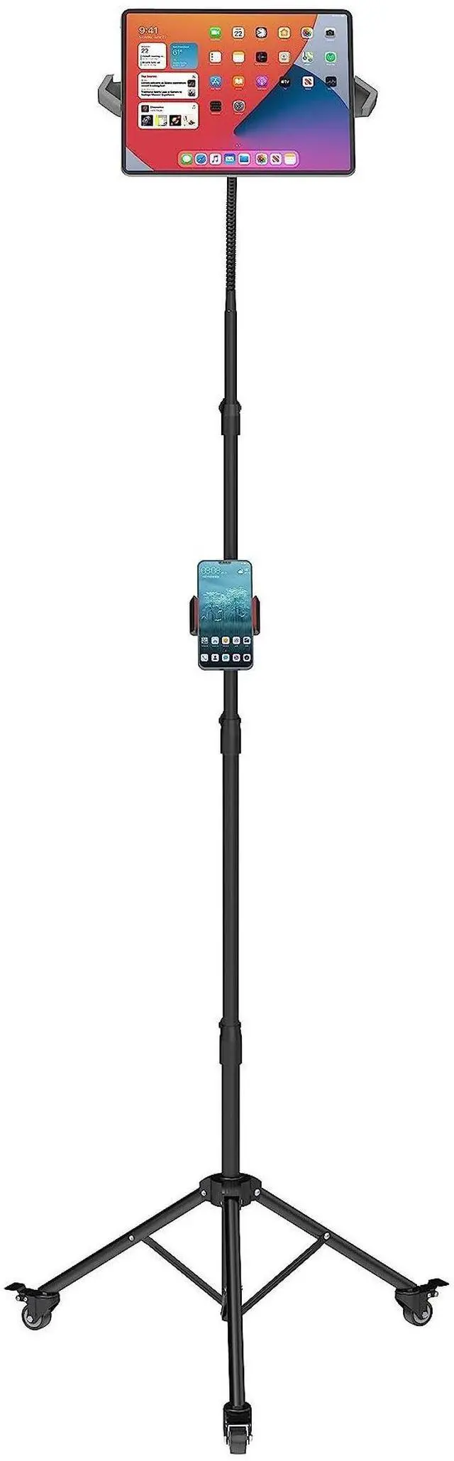 GOOSENECK STAND FOR TABLET AND PHONE: This ergonomic gooseneck mobile stand comes with two holders, one for phone and one for tablet. The mobile stand can support 9.5" to 14.5" tablet and any kind of mobile phone. The stand is compatible with iPad Pro 9.7 10.5 11 11.9, iPad 2 3 4 5, iPad Air 2 3 4, iPhone 6, 7, 8, 11, 12, 13, 14, iPhone Pro, iPhone Pro Max, Samsung Galaxy Tablet, Samsung phone, Fire Tablet and Surface Pro. Side mount will fit all phones. ^^