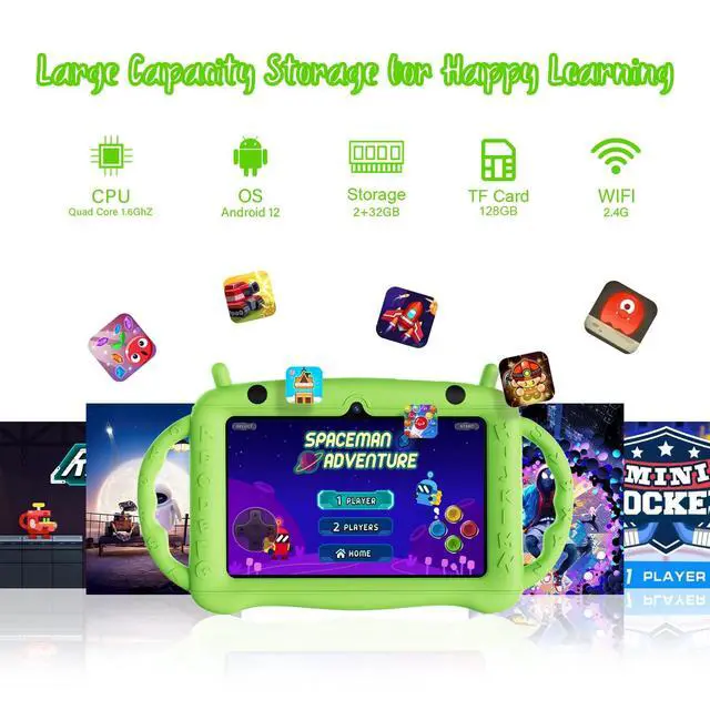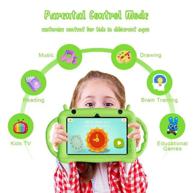 Designed for KidsOur 7 inch kids tablet is great for childrens learning and growth. With the preinstalled iwawa app, offering you a range of age-appropriate contents including games, video, music, paintings and educational apps. Very helpful for develop children brain, improve their learning ability.