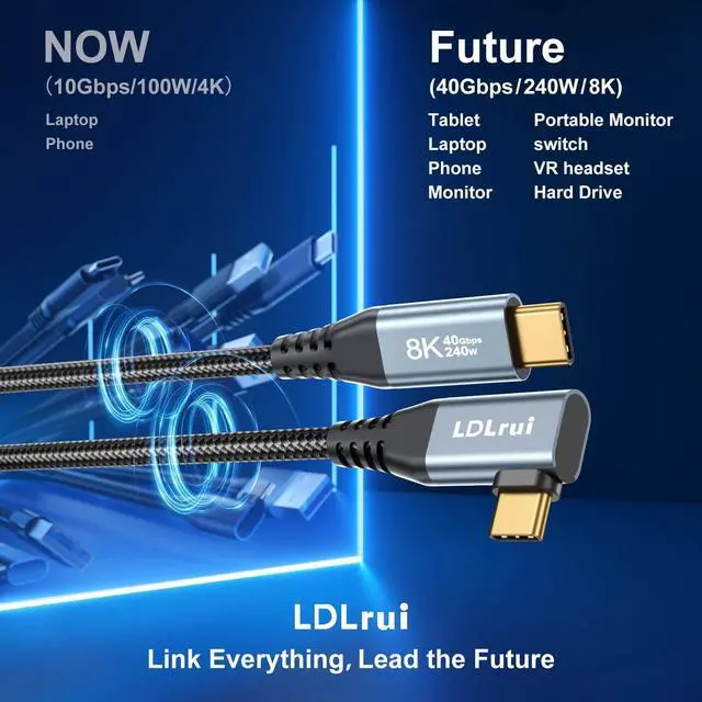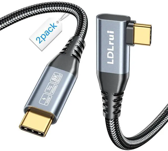 LDLrui 2 Pack USB C to USB C Monitor Cable 8K@60Hz/4K@144Hz, Right Angle USB 4 Video Cable, 40Gbps High Speed Data Transfer Cord,240W Fast Charge for iPhone 16, MacBook Pro, iPad, Lenovo, 4FT