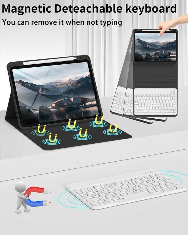 CompatibilityDesigned for iPad 2025 M3 iPad Air 11-inch (A3266, A3267, A3270), 2024 M2 iPad Air 11-inch (A2902, A2903, A2904), 2022 iPad air 5th generation (A2588, A2589, A2591), 2020 iPad air 4th generation (A2072, A2316, A2324, A2325). Not compatible with any other iPad Models. Please check the back bottom of your iPad to find the model number ^^ Detachable Bluetooth KeyboardDetachable Bluetooth keyboard with magnetic case, instantly becomes a portable laptop, easy to install and remove, built-in rechargeable battery, no need to replace the battery, Type-C charging cable It can be fully charged in 2 hours, work for at least 230 hours, stand by for 90 days, making it more convenient to use ^^ Full protection and Pencil HolderThis iPad case is made of high-quality synthetic leather outer shell and soft TPU inner shell, the inner shell is designed with honeycomb grid pattern for better heat dissipation and anti-slip, which can better protect your tablet from accidental drops and collision scratches.