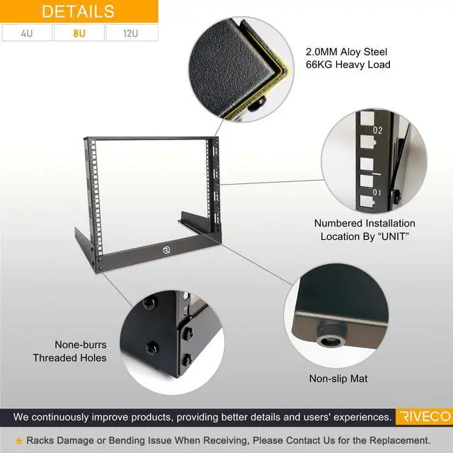 SOLID MATERIAL: Features 2.0 mm cold-rolled steel that are well made and great powder coat finish which can prevent scratching the equipment. Clear U marking helps calculate the space and install the devices quickly and easily.