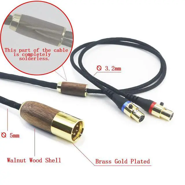 Extension Cords4Connector: 4-pin XLR Balanced Male5, the connectors shell are made of the walnut wood / Solid Wood - Walnut + Brass Gold Plated6, The 6N OCC copper Single Crystal Silver Plated wires provide clear sound, and a protective layer is added to eliminate noise interference problems, you will enjoy matchless HiFi sound and maintain original sound quality of your headphone,