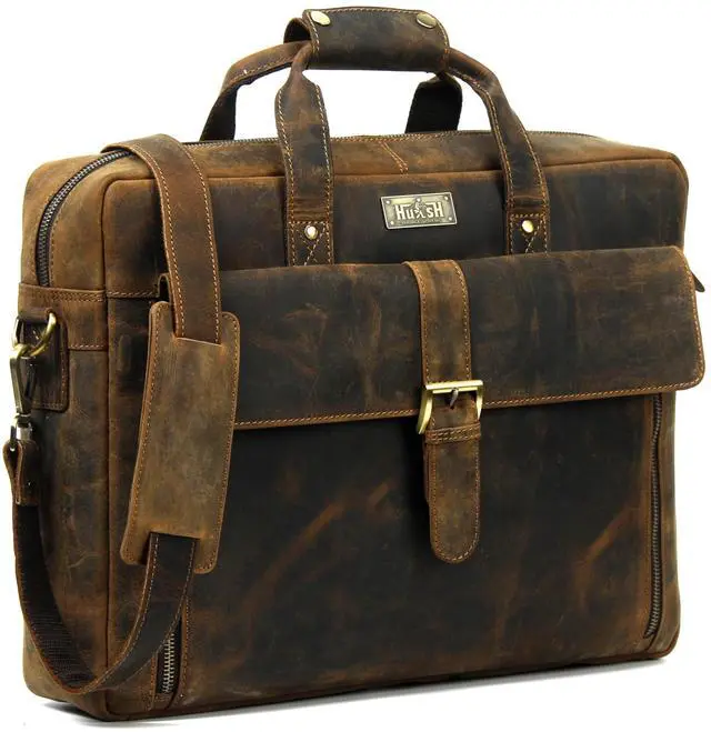DescriptionHulsh Leather Laptop Bag: The Perfect Blend of Style and Functionality This meticulously handcrafted leather laptop bag is designed for the modern professional who values both style and practicality. With ample space to accommodate laptops up to 17 inches, this bag also features multiple compartments for books, notebooks, and other essentials. The sturdy carrying handle and adjustable crossbody strap provide versatile carrying options, while the dedicated laptop compartment ensures your device stays safe and secure. Whether you're heading to the office, the classroom, or traveling across the globe, this bag is the perfect companion.