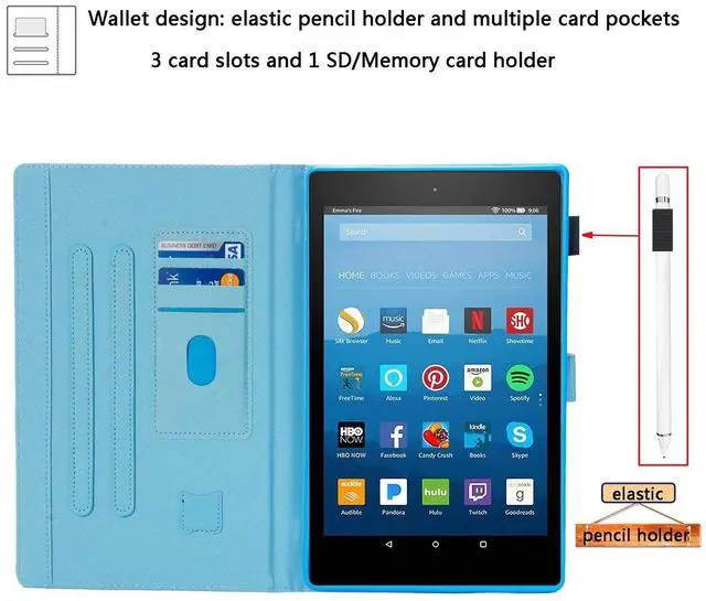 UUcovers Product Features: 1. The kindle fire 10.1 inch 7th gen case has several card slots to store your ID, credit cards, SD cards. Fashion design with stylish pattern. 2. The full body and impact protection case built-in an elastic stylus pencil slots, convenient for daily use. (Including A stylus) 3. PU leather + TPU Material + scratch-free microfiber interior, scratch resistance, with good corner edge protection. 4.