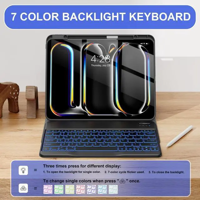 Backlight]: The keyboard for iPad Pro 13 has 7 backlight colors to change that allow you to type comfortably in the dark.